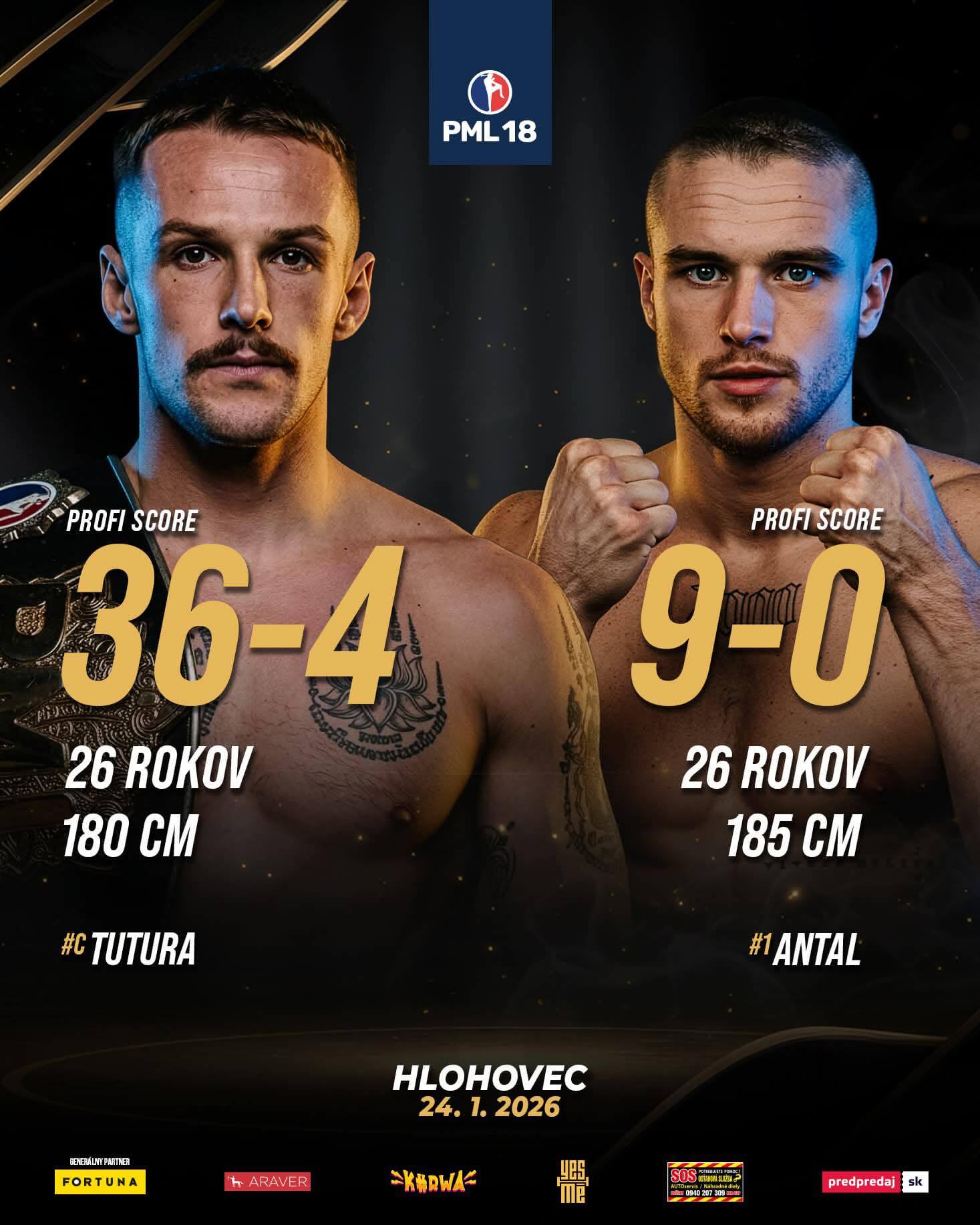 Muaythai šampión dvoch divízii v rámci PML, Juraj Tutura (26), dnes obhajuje titul do 80 kg a zároveň môže zabojovať o slovenský titul WMC. Jeho celková bilancia v postoji je 36 výhier – 4 prehry. V tejto organizácii však ešte neprehral (4-0). Vie doručiť poriadne tvrdé knokauty.