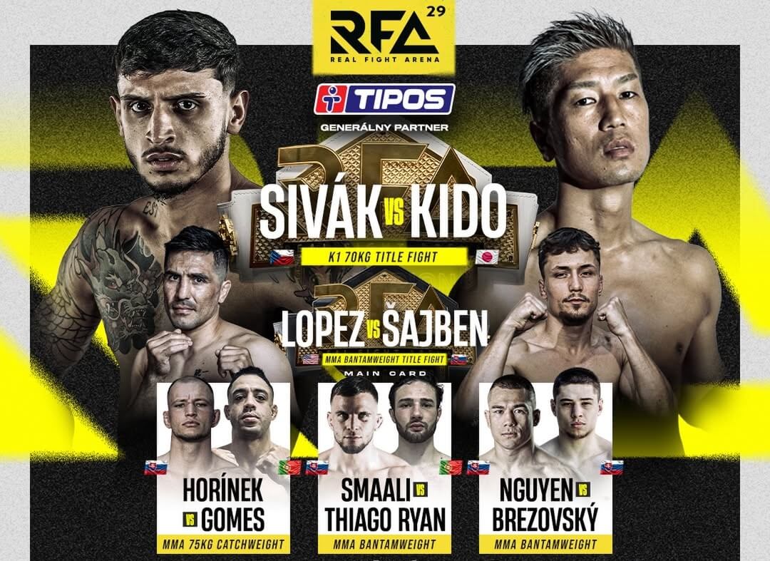 Fight karta dnešného podujatia v hlavnom meste je naozaj kvalitne obsadená. V hlavnom zápase bude hviezdny Vašek Sivák obhajovať titul v K1 aj neporaziteľnosť proti japonskému veteránovi Yasuhirovi Kidovi. Predtým vyzve Slovák Dávid Šajben RFA šampióna Gustava Lopeza v MMA.